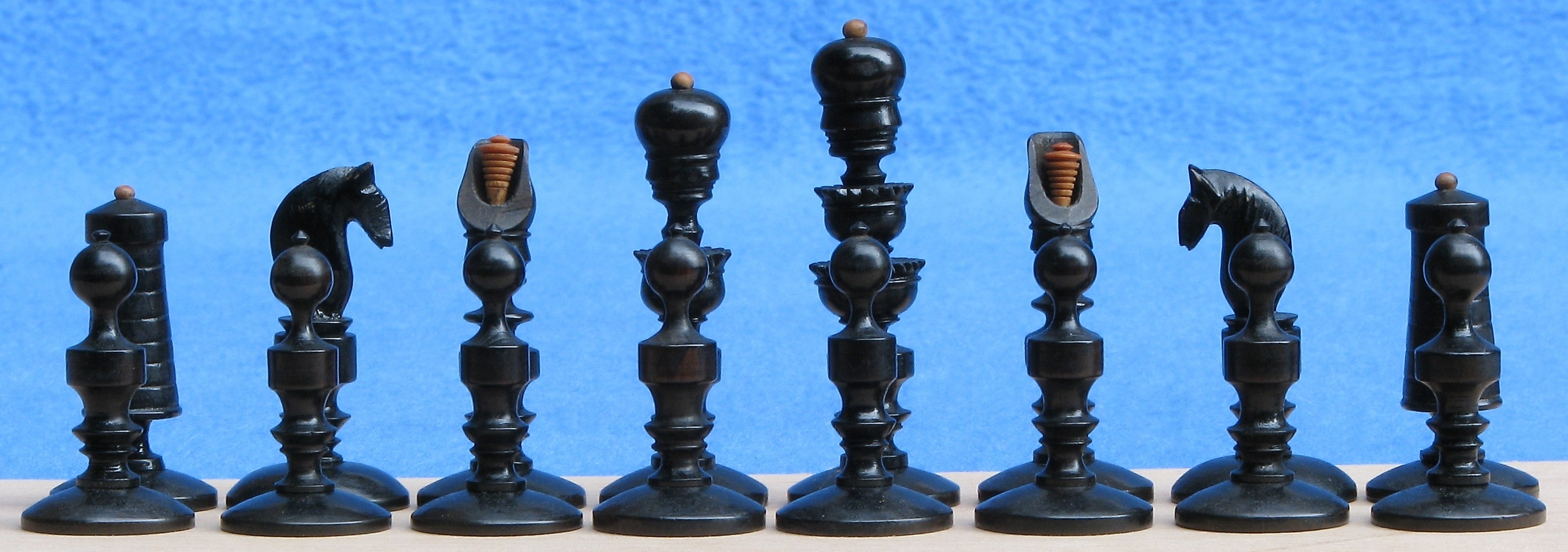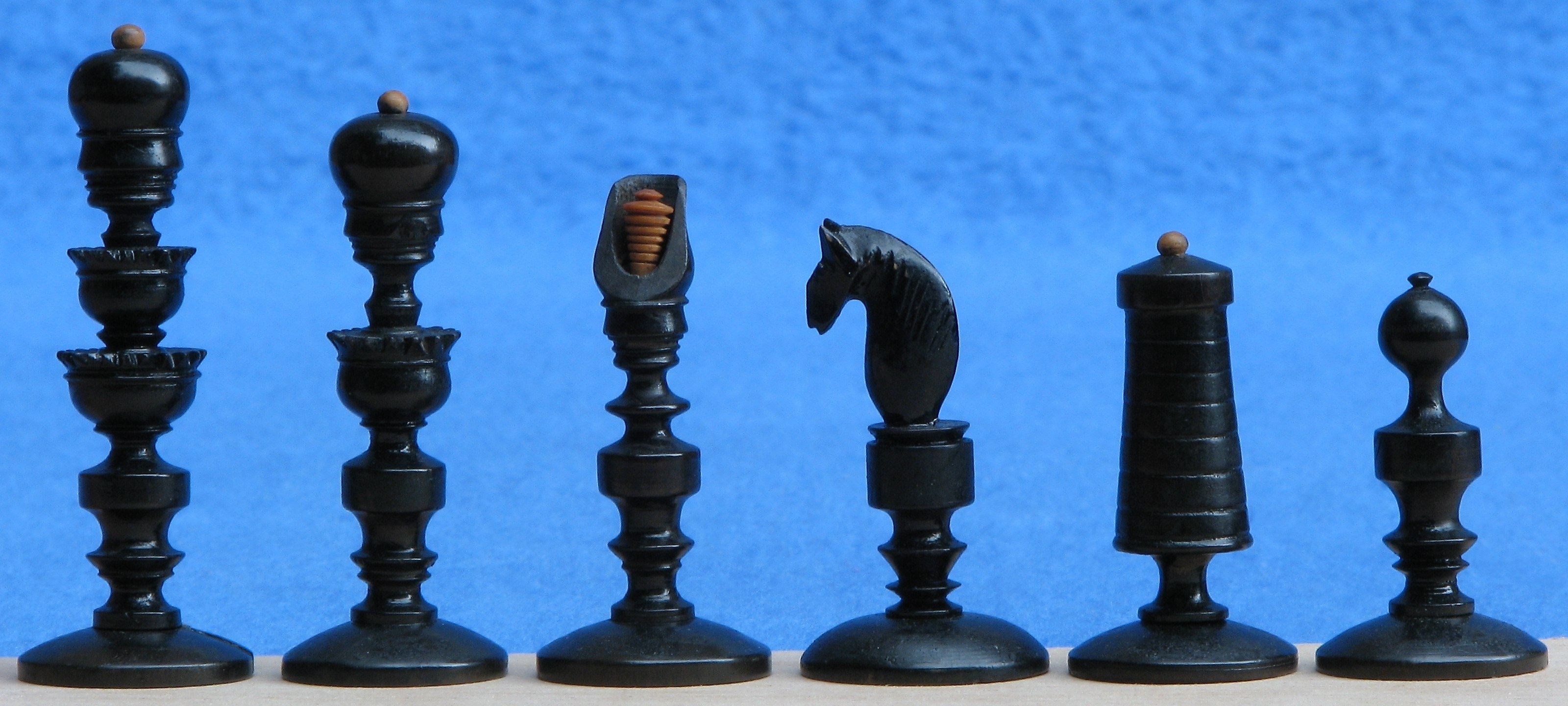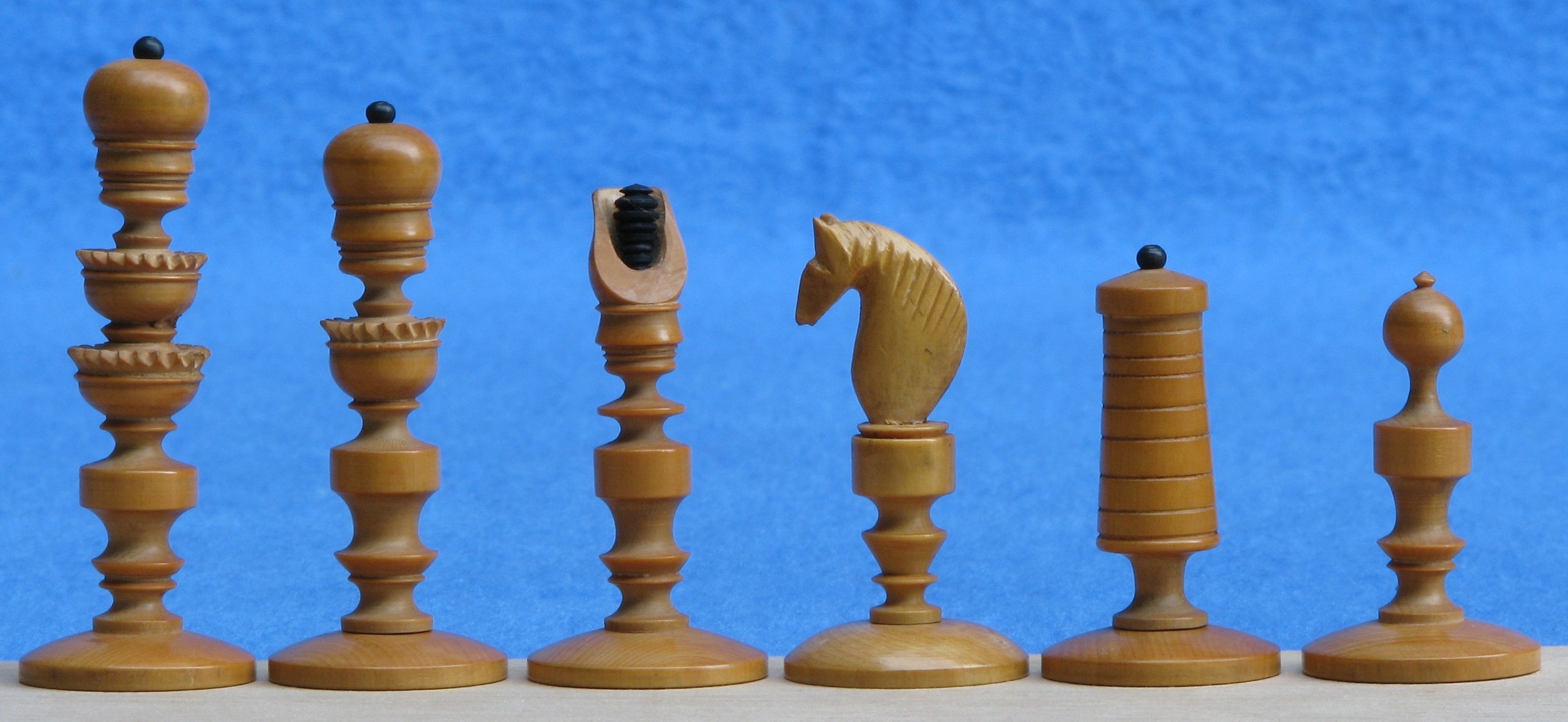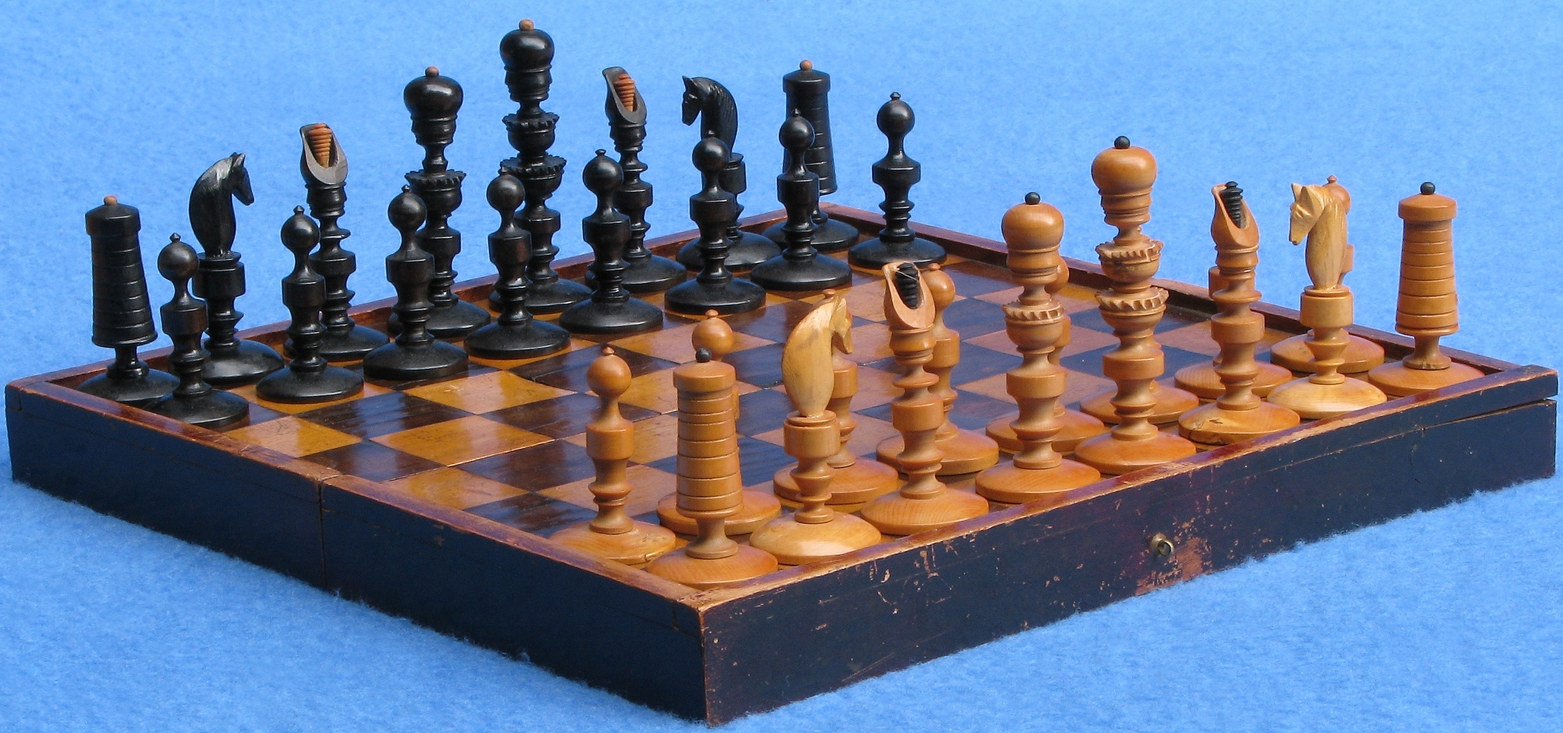 196 196: obtained 1-jul-2007 Austria, “Biedermeier coffeehouse” 1st half 19th century Boxwood + pear? K 8.2; p 5.0 Box/board 29.3×14.5×5.8 (closed)