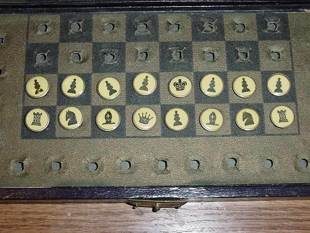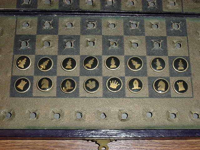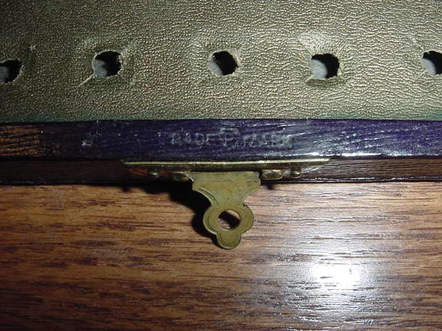 216 216: obtained 20-jun-2008 USA ca. 1910 Enamelled brass pieces Ø 1.4 Box 11.6×22.9×2.6 Board 15.5×16.0 (inside border)