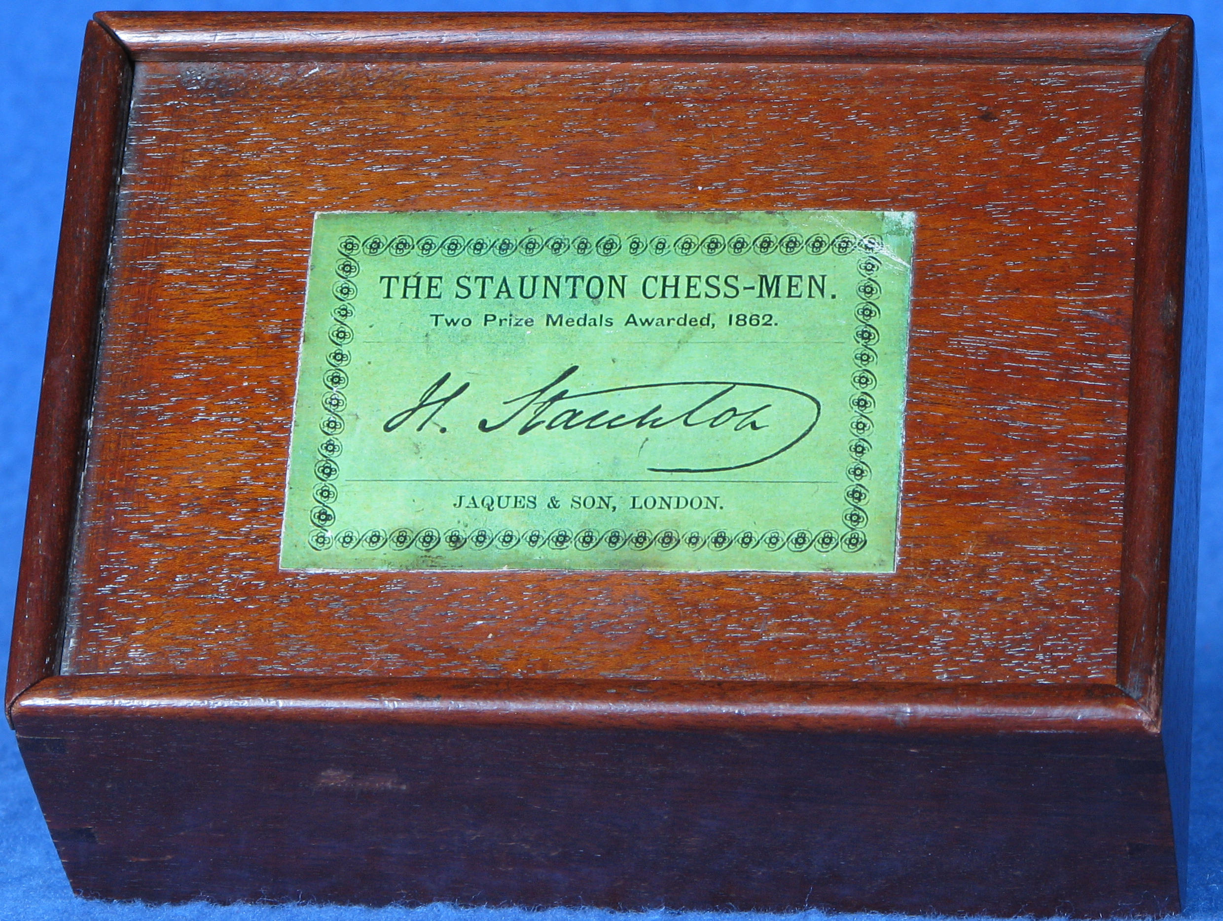 287 287: obtained 15-jan-2011 England, by Jaques, “Staunton” (“late Anderssen”) ca. 1870 Boxwood + ebony K 7.4; p 3.7 Box 16.0×11.6×6.8