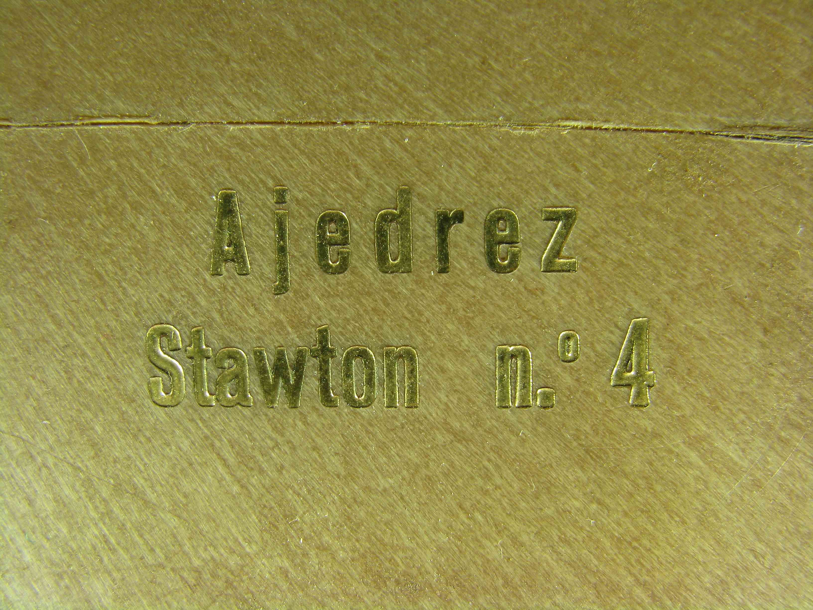549 549: obtained 26-feb-2020 Spain, by Escardibul in Barcelona, “Stawton n.º 4” 1960 Plastic K 7.1; p 4.3 Box 19.0×11.8×7.1 Board 43.4×43.2×41.2